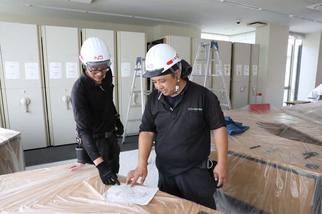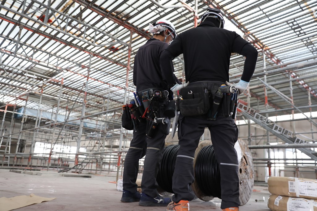 火災報知器や光ケーブルの配線など、多岐にわたる業務を担当します。また、施工管理を行い、品質と納期を守りつつ、
